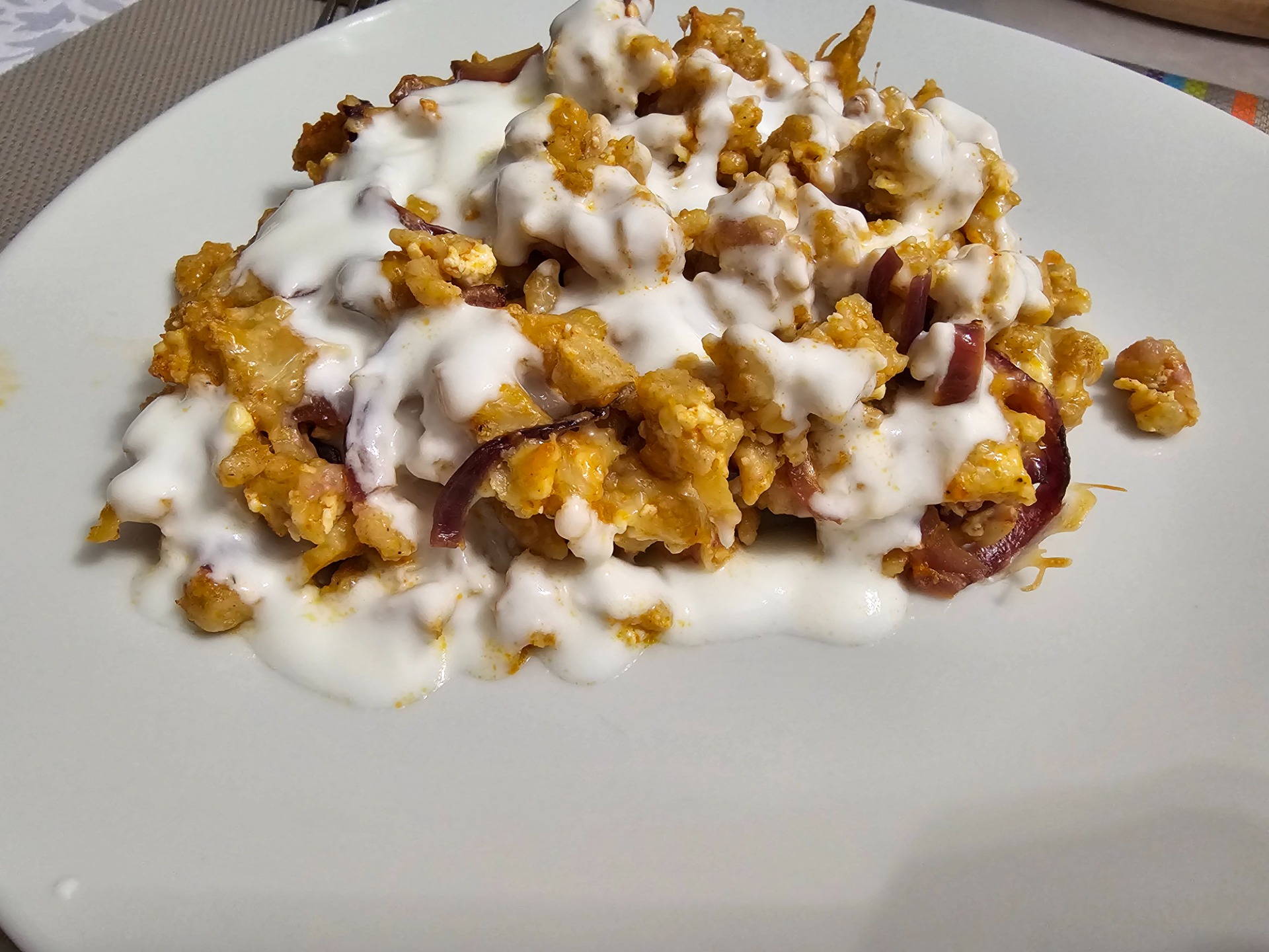 - Az hagymás olajos serpenyőbe a nokedlit lepirítom és még forrón hozzákeverem a túrót és a lilahagymát. Meghintem piros paprikával és török rá fekete borsot. Kicsit összeforgatom és leveszem a tűzről/főzőlapról.